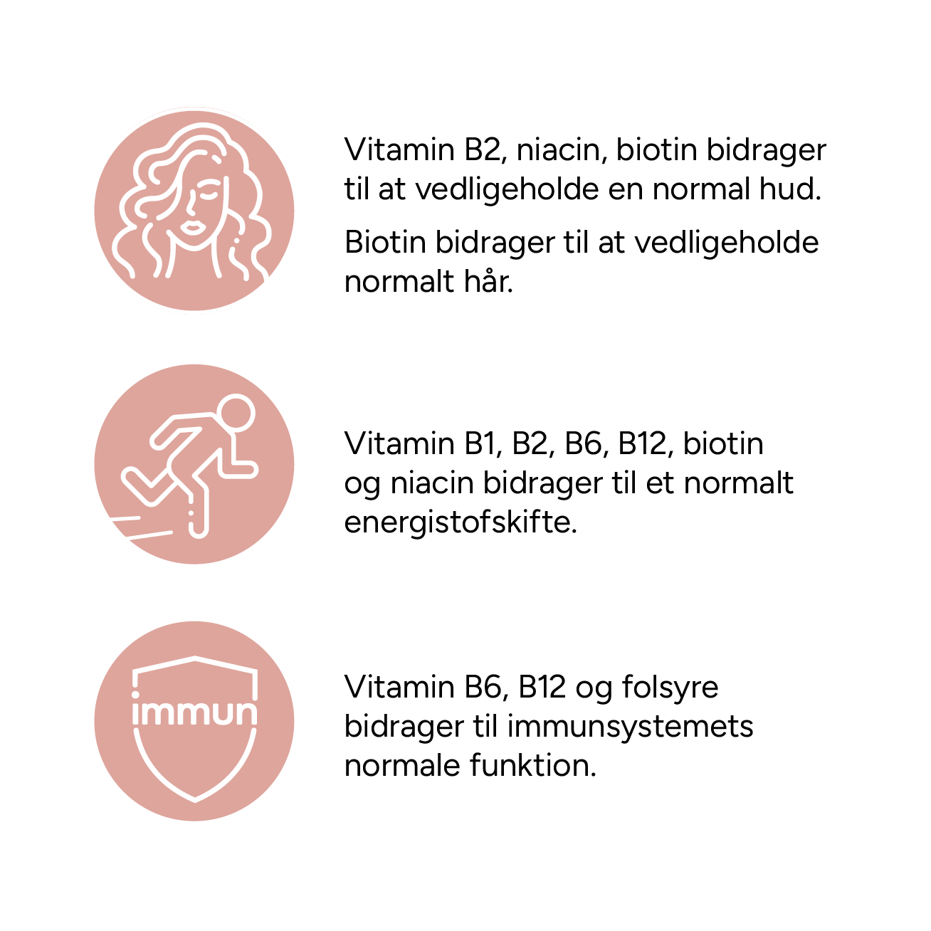 Med bl.a. biotin der bidrager til at vedligeholde normal hud og hår