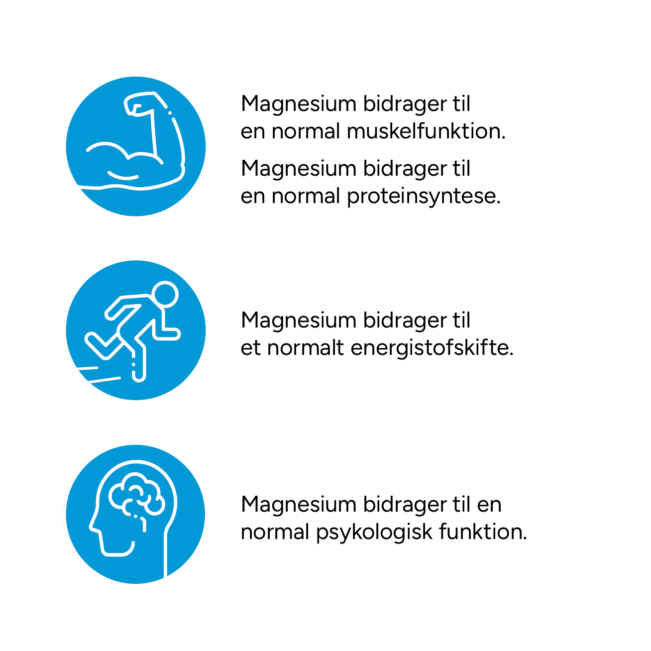 Mag­ne­sium bidra­ger til nor­mal Muskel­funk­tion og til at mind­ske træt­hed og udmat­telse