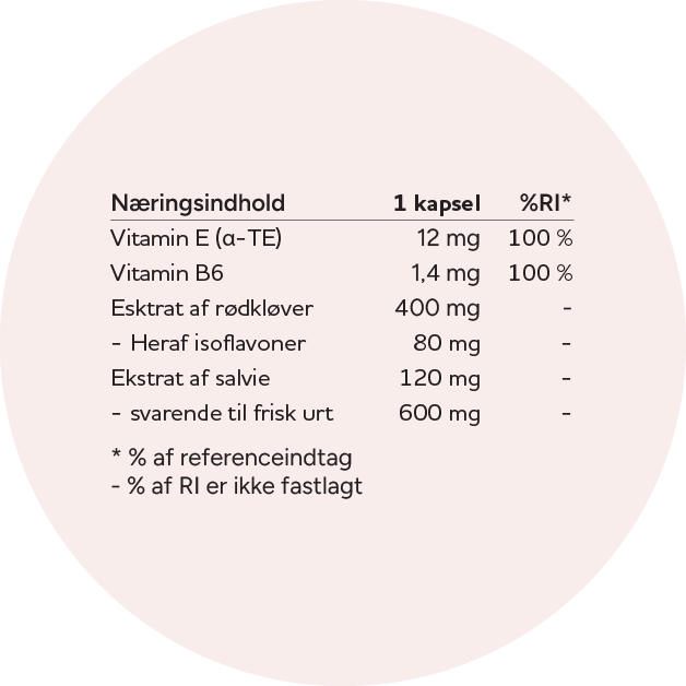 Ingredienser: Ekstrakt af rødkløver (Trifolium pratense L.), ekstrakt af,