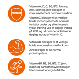 calcium-D-pantothenat, riboflavin, zinkoxid, sødestof (sucralose),