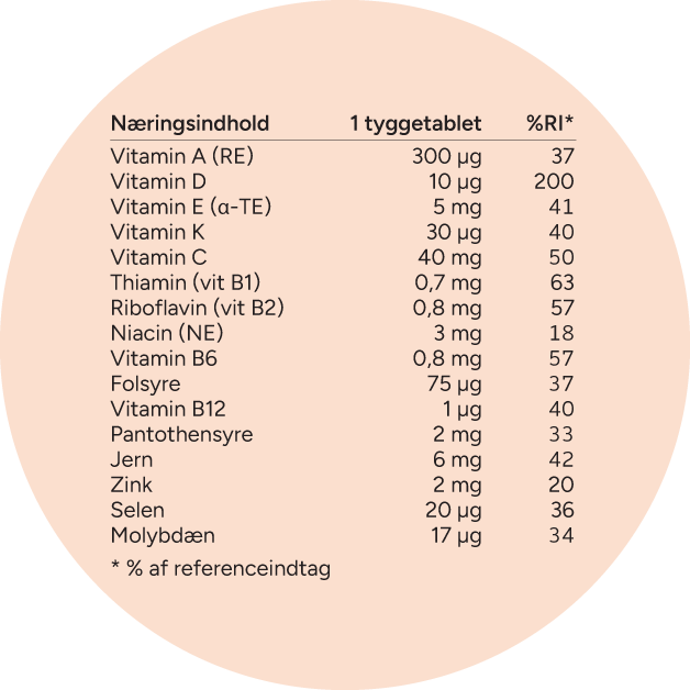 Anbefalet daglig dosis til børn fra 3 år og derover: 1 tablet.