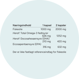 *Den gavnlige effekt opnås ved et dagligt indtag på 250 mg EPA og DHA, svarende til 1 kapsel.