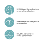 ** Den gavnlige funktion opnås ved et dagligt indtag på 250 mg DHA, svarende til 3 kapsler.